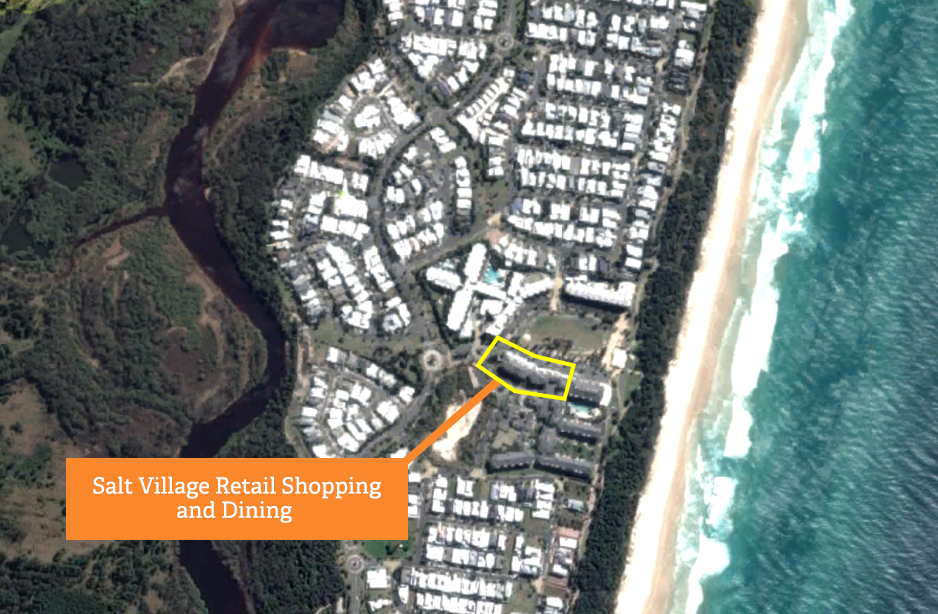 Salt Village is a rapidly growing residential and resort destination on the Tweed Coast with three world class resorts comprising over 650 rooms, surrounded by a burgeoning suburban population of over 5,000 new residential homes within a 7km radius in planning and development stages.